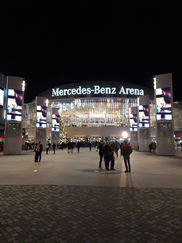 Non loin du mur, se trouve la Mercedes benz Arena, antre des Eisbären (ours blanc) de Berlin. Pour les amoureux de sport en général et encore plus ceux de hockey comme nous, on vous conseille fortement de faire un stop pour un match. Question niveau de jeu, c'est pas mal du tout, très plaisant à voir et pour pas cher (les prix les plus bas sont de 17 à 50 €). Niveau ambiance, là on est au top du top ! Le show d'avant-match est digne des plus grands club Nord-américains. La patinoire possède son kop d'ultra qui ne cesse de chanter durant tout le match et qui met le feu à la salle. L'infrastructure en elle-même est moderne, on peut y manger bretzel/currywurst/pop-corn et boire de la bière pour un tarif raisonnable. Il y a aussi plusieurs boutiques pour acheter un souvenir de l'équipe.